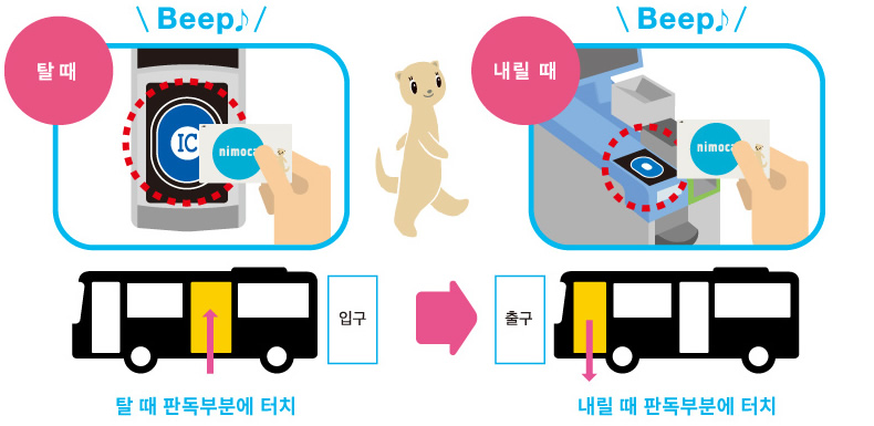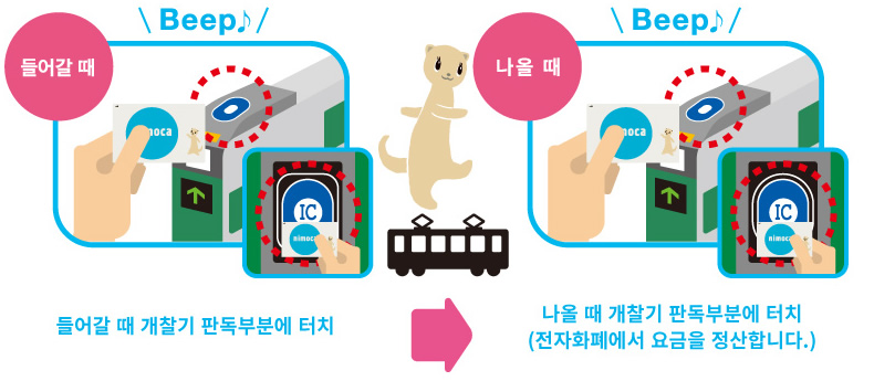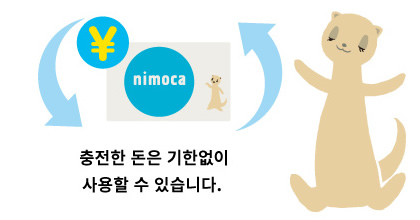 nimoca는 버스에도, 전철에도, 쇼핑에도 사용할 수 있는 IC카드입니다.